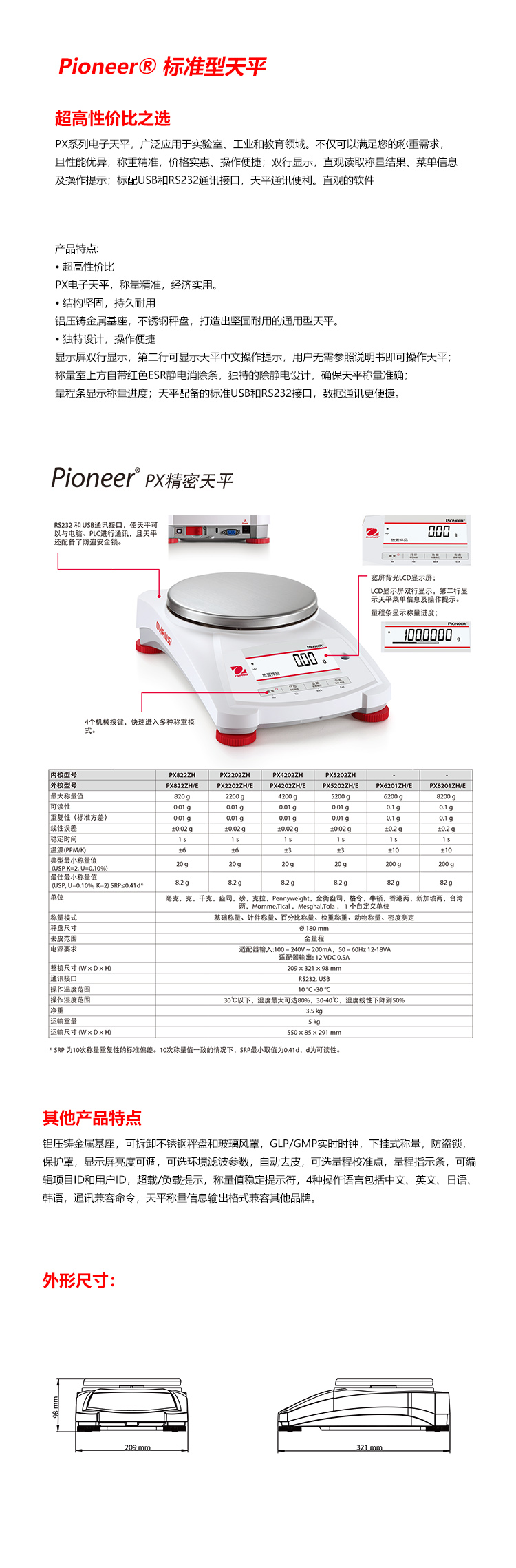 產(chǎn)品名稱:電子精密天平/PX6201ZH/E